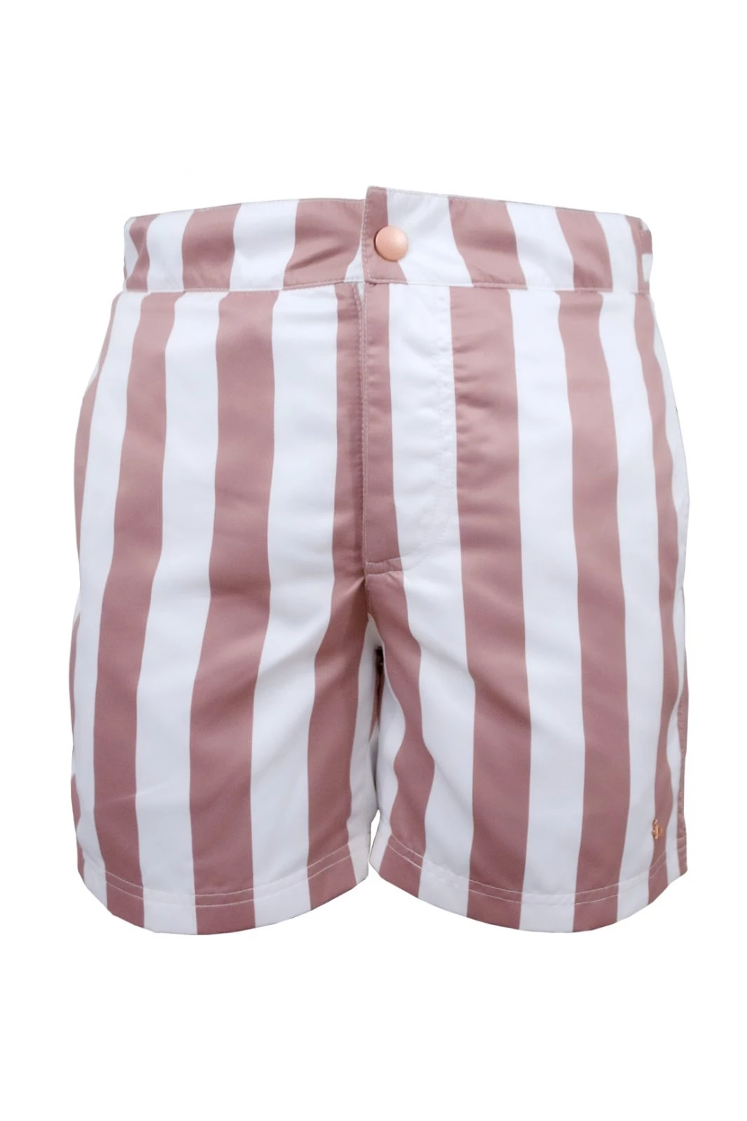 Men swim trunk bermuda-style with zipper and internal comfortable mesh. It also includes adjustable side fasteners, gold-plated accessories, side pockets, and a quick-drying fabric.