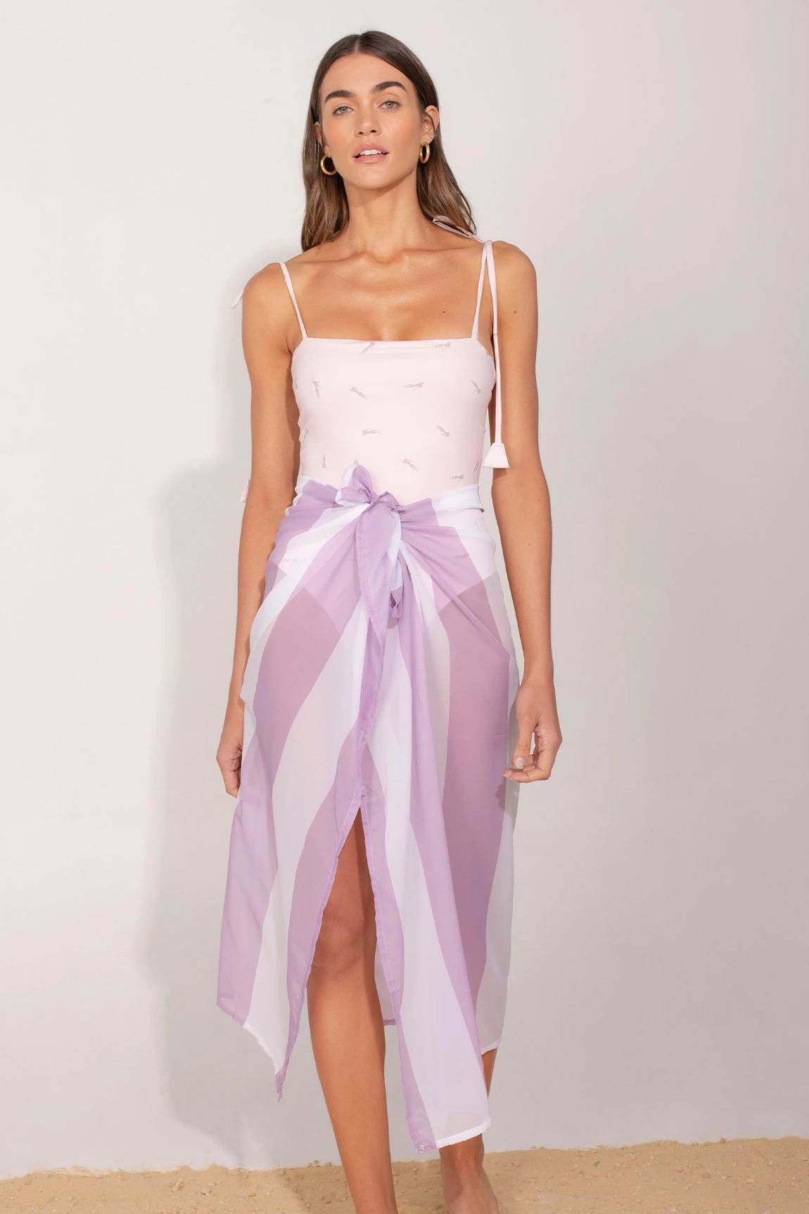 Swimwear cover up lila pastel color, a trend for this 2021. Fast-drying product, lightweight fabric and adjustable at the waist design. This cover up is one size, it fits well with any body type.