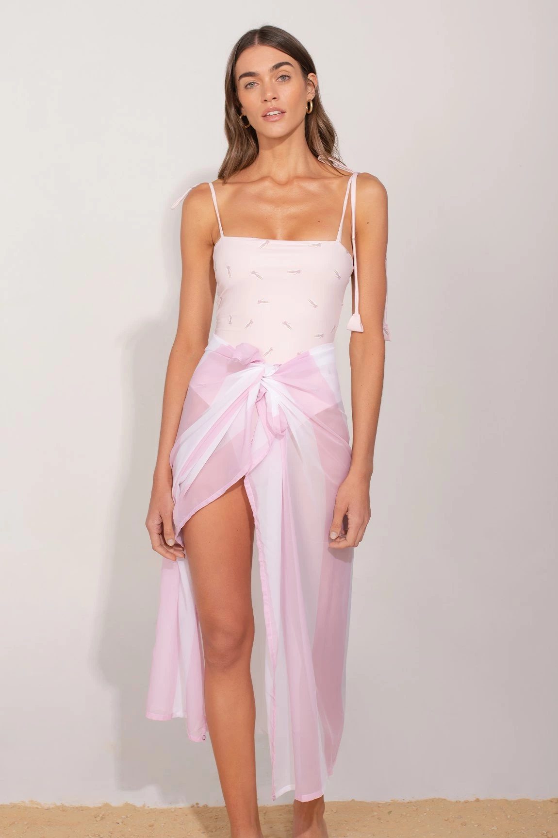 Swimwear cover up pink pastel color, a trend for this 2021. Fast-drying product, lightweight fabric and adjustable at the waist design. This cover up is one size, it fits well with any body type.