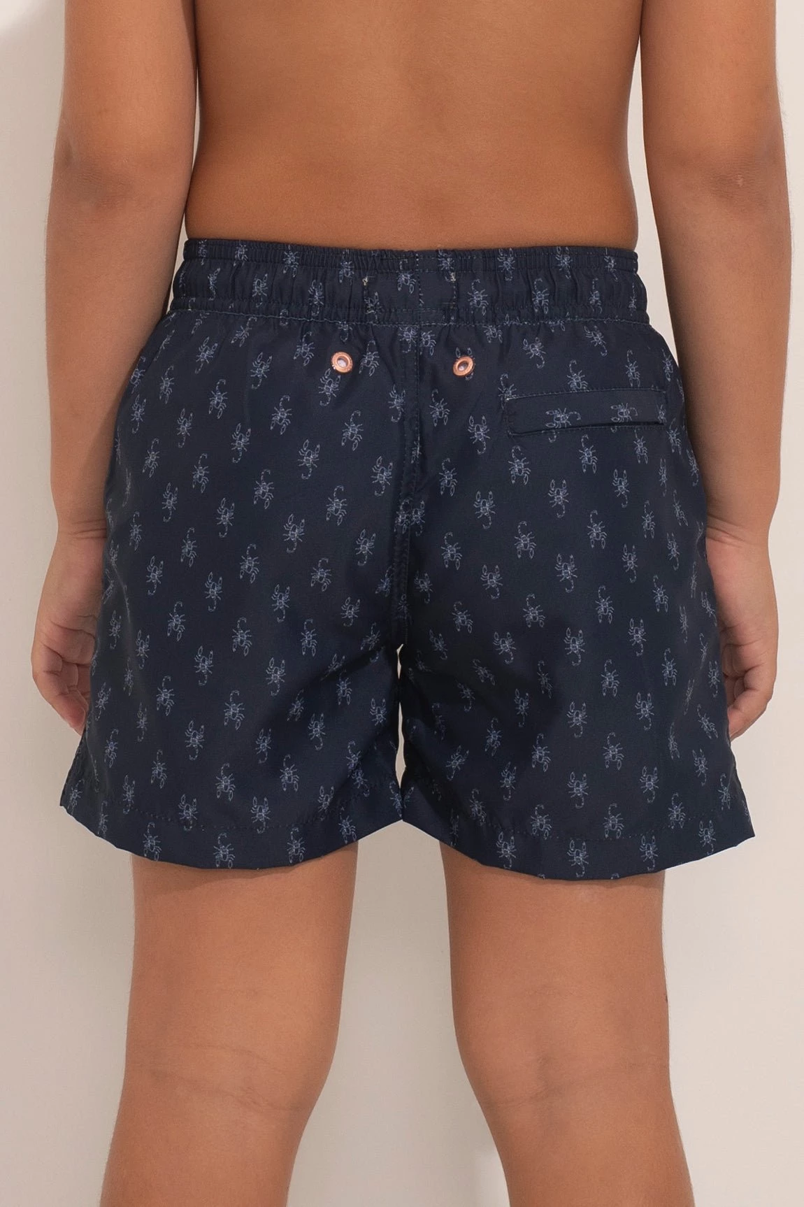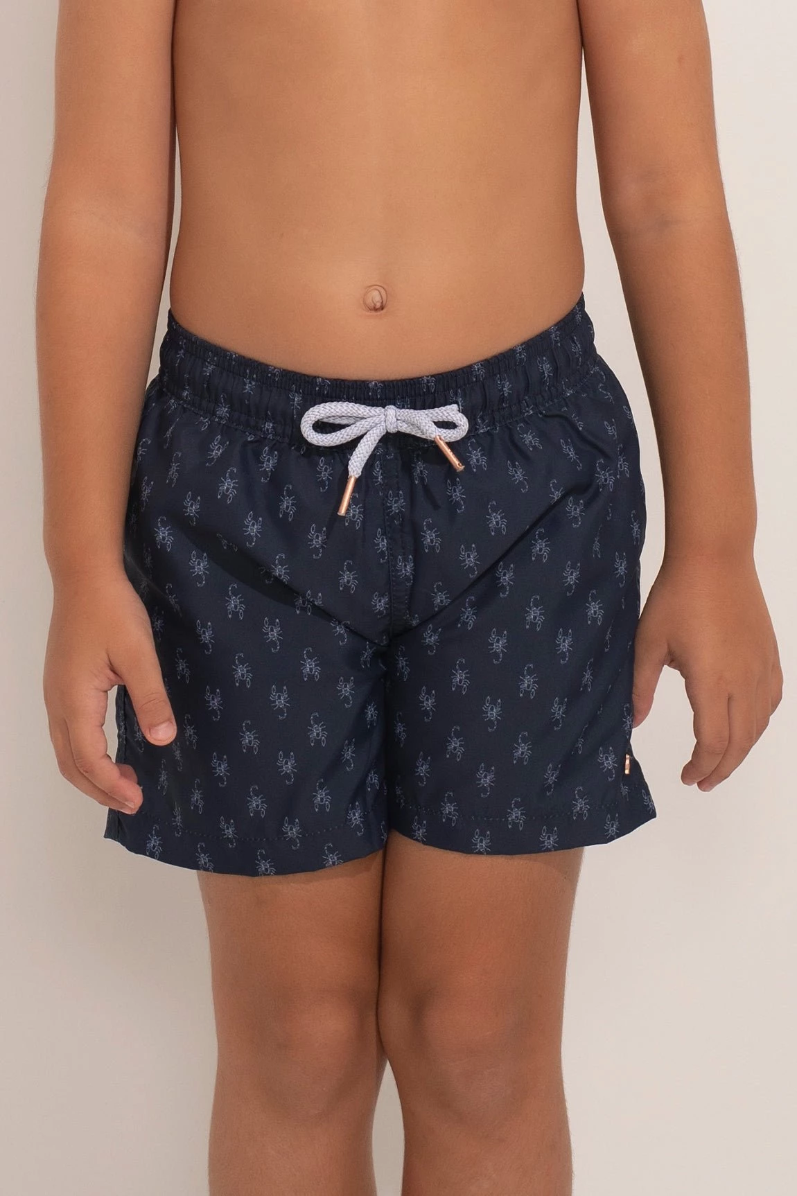 Swim trunk for boy. Lightweight swim fabric with mesh lining, elasticated drawstring waist, stainless accessories.