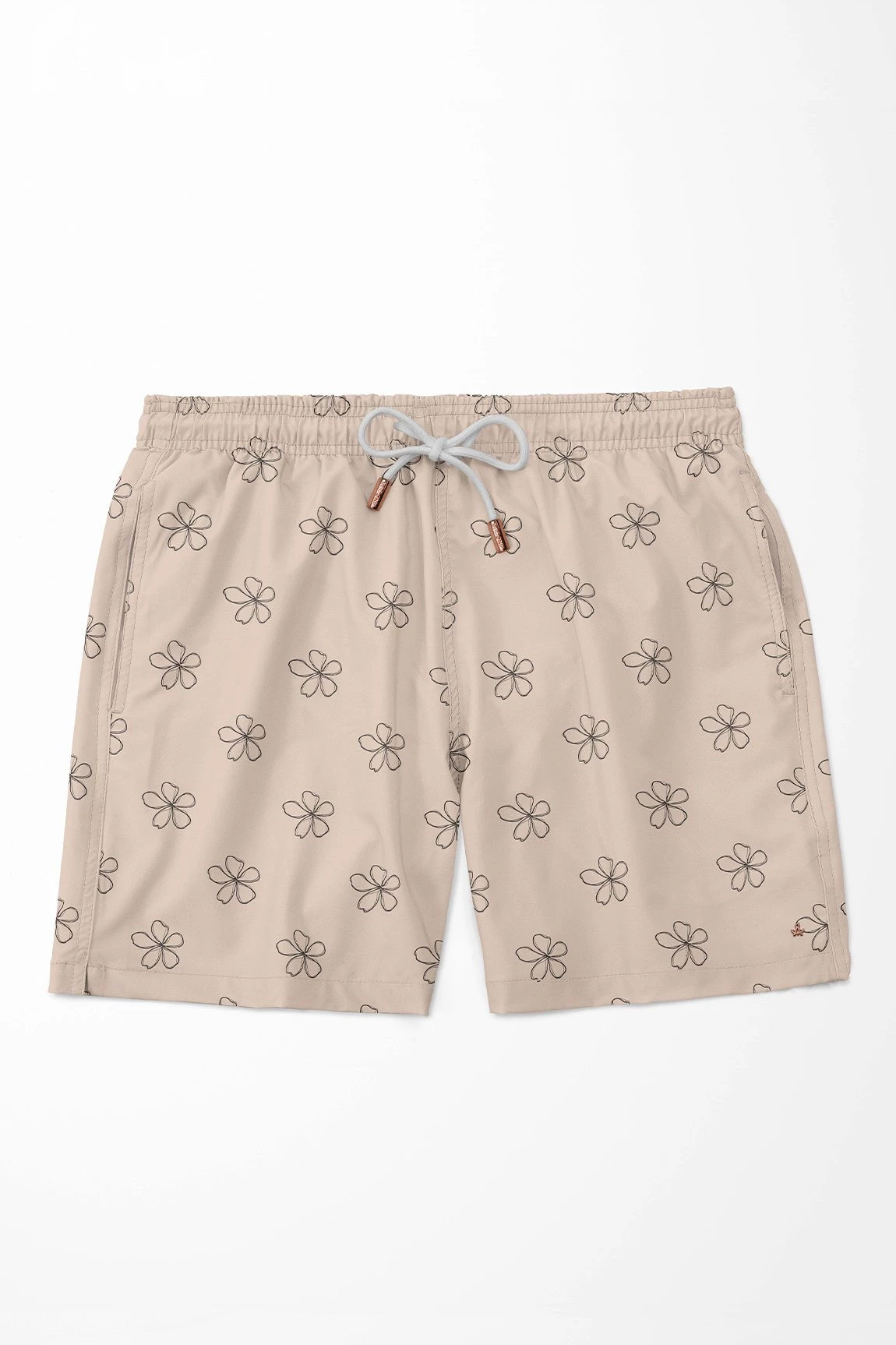 Swim short for men. Lightweight swim fabric with mesh lining, elasticated drawstring waist, stainless accessories, side functional pockets.