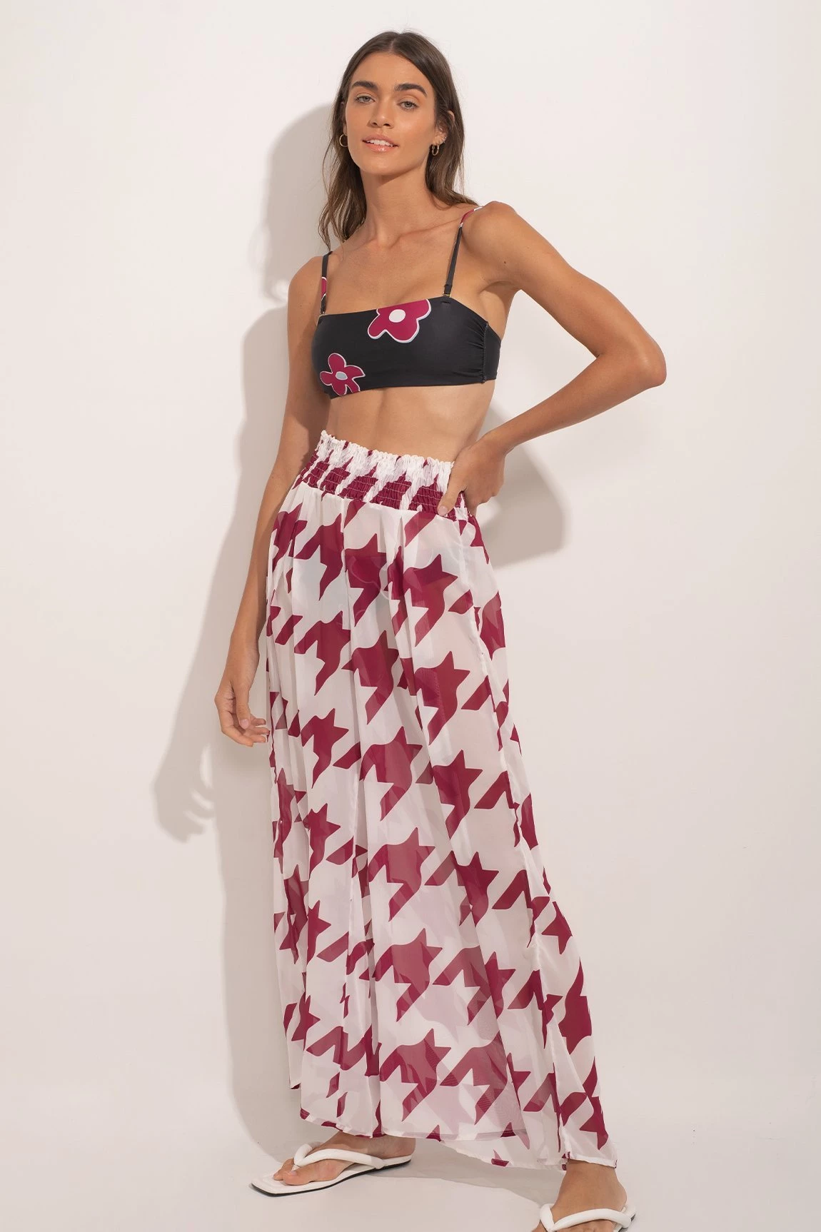 Resort-wear pants. Top not included. Fast-drying product, lightweight fabric and adjustable at the waist design. Model in photo is wearing size S-M.Â