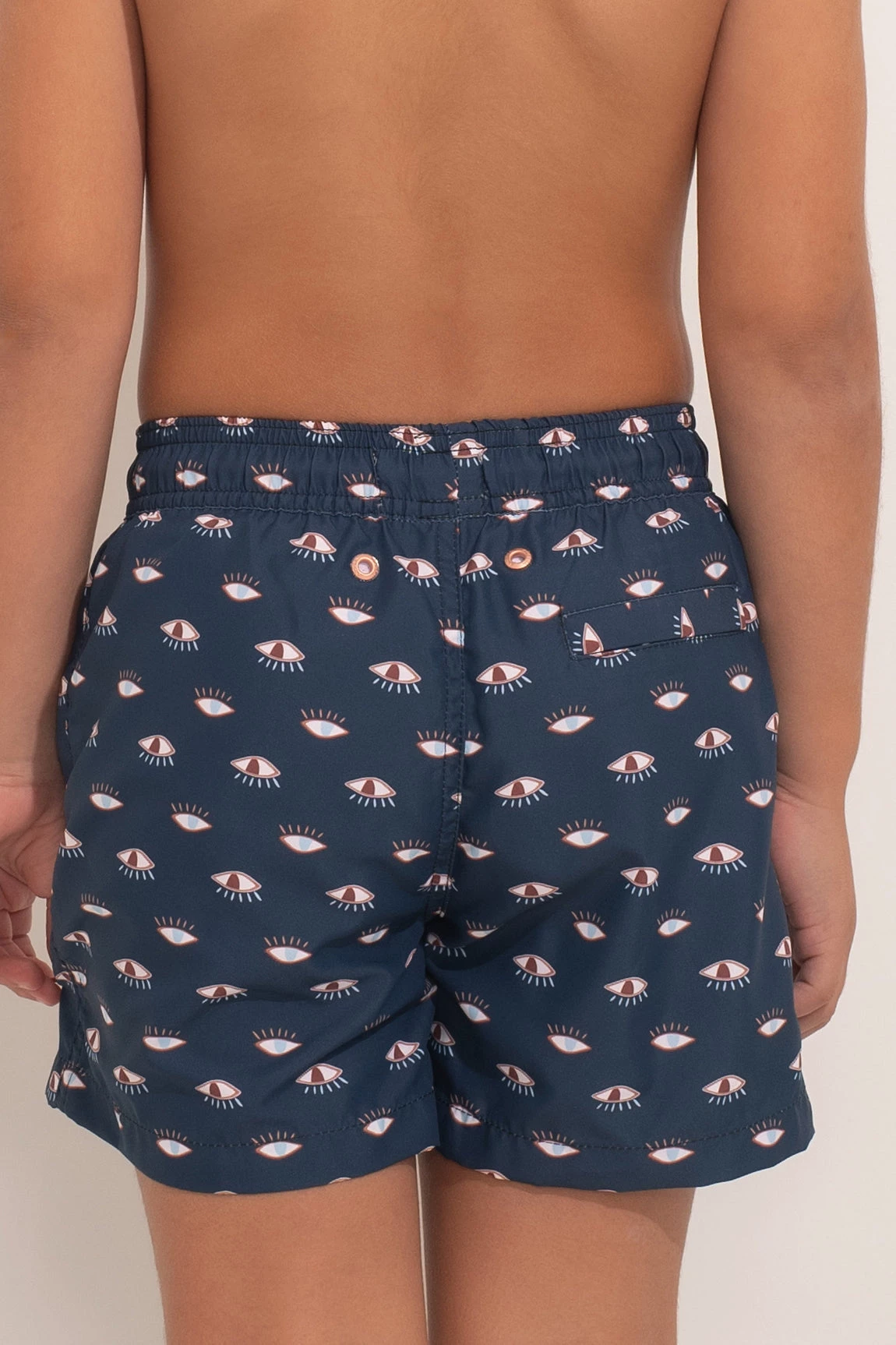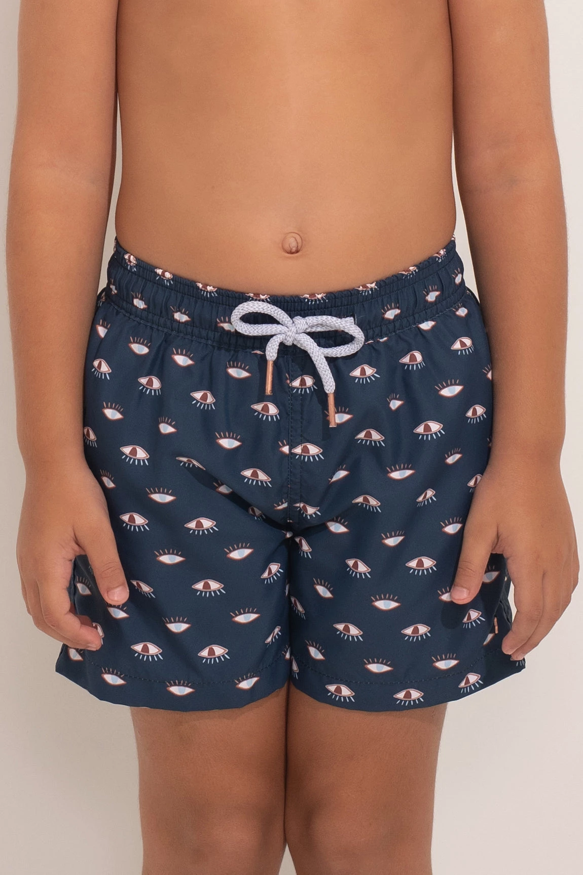 Swim trunk for boy. Lightweight swim fabric with mesh lining, elasticated drawstring waist, stainless accessories.