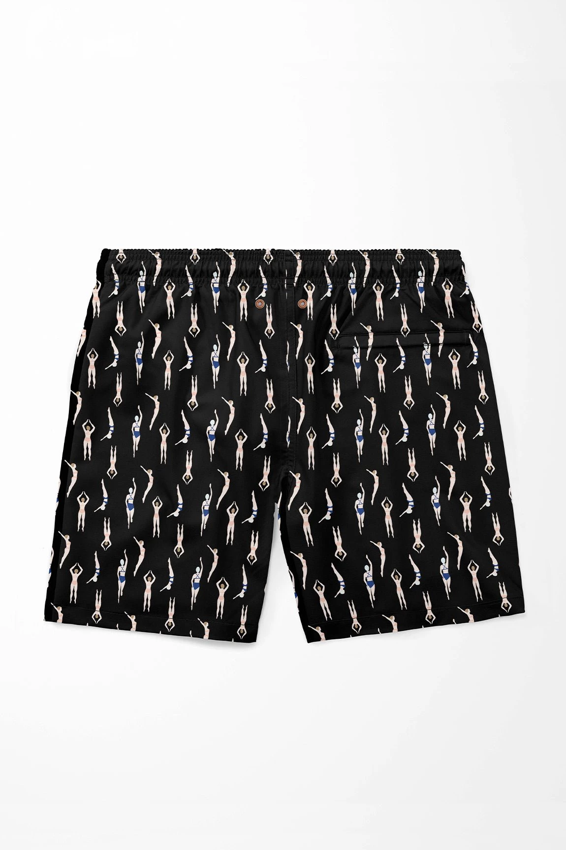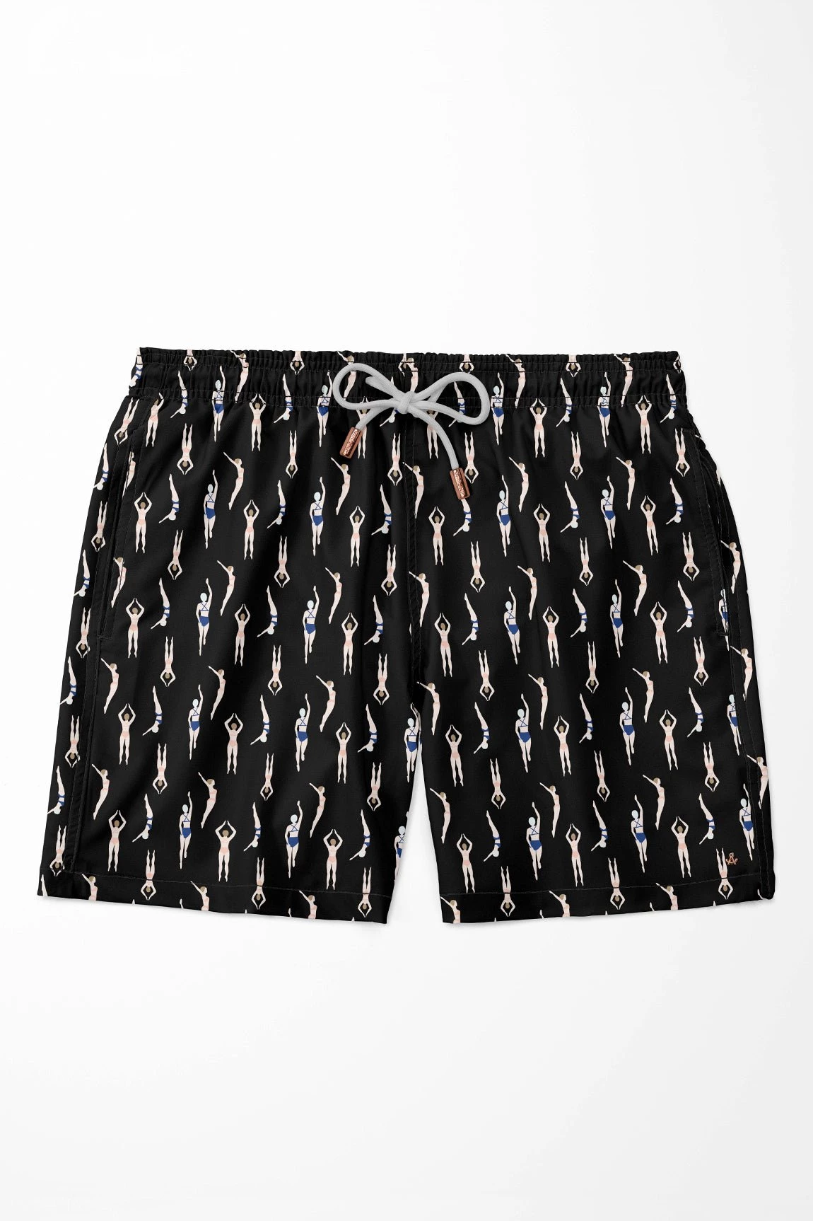Swim short for men. Lightweight swim fabric with mesh lining, elasticated drawstring waist, stainless accessories, side functional pockets.