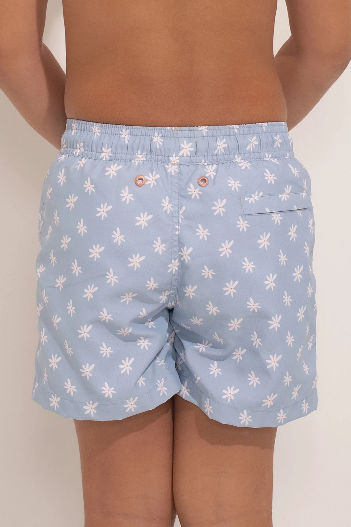 Swim short for boy. Lightweight swim fabric with mesh lining, elasticated drawstring waist, stainless accessories, side functional pockets.