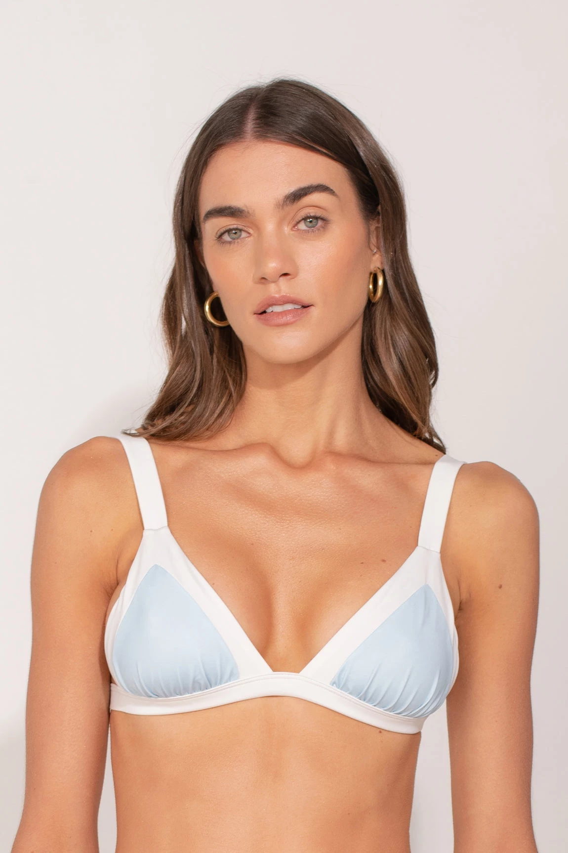 Swimwear for women top, bikini two pieces, eco-friendly fabric made from recycled bottles EKO®FIBERS. Bottom not included, removable pads and adjustable strips and back. Model in photo is wearing size S.