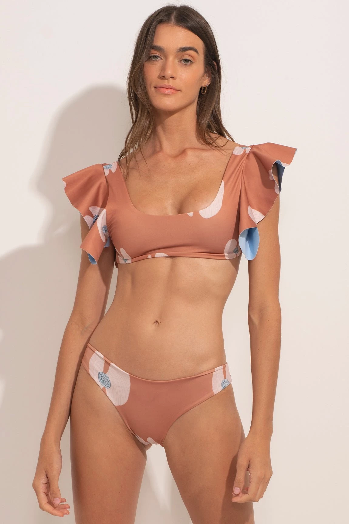 Swimwear for women top ruffles bikini. Removable pads. Bottom not included. Eco-friendly fabric made from recycled bottles EKO®FIBERS. Model in photo is wearing size S.
